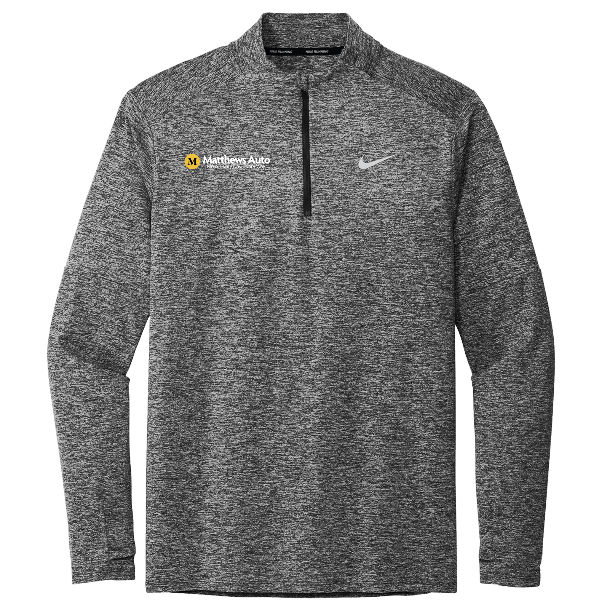 This best-seller delivers all-utility warmth and comfort from the sweat-wicking fabric down to the thumbholes. The stand-up collar and drop tail hem provide additional coverage. A contrast heat transfer Swoosh logo is on the left chest. Solids are made of 5.5-ounce, 88/12 recycled polyester/spandex jersey Dri-FIT fabric. Heathers are made of 5.75-ounce, 88/12 recycled polyester/spandex jersey Dri-FIT fabric.